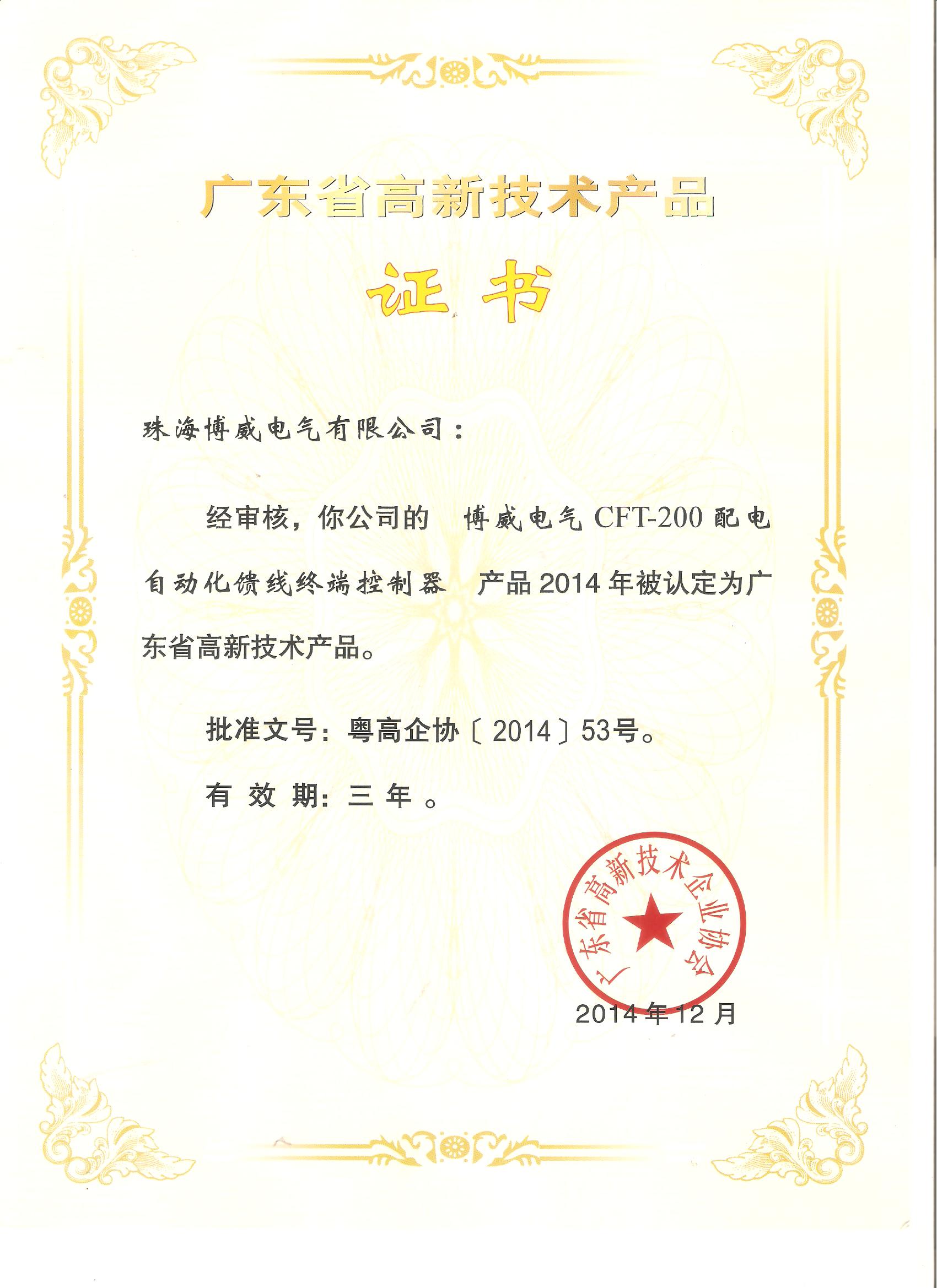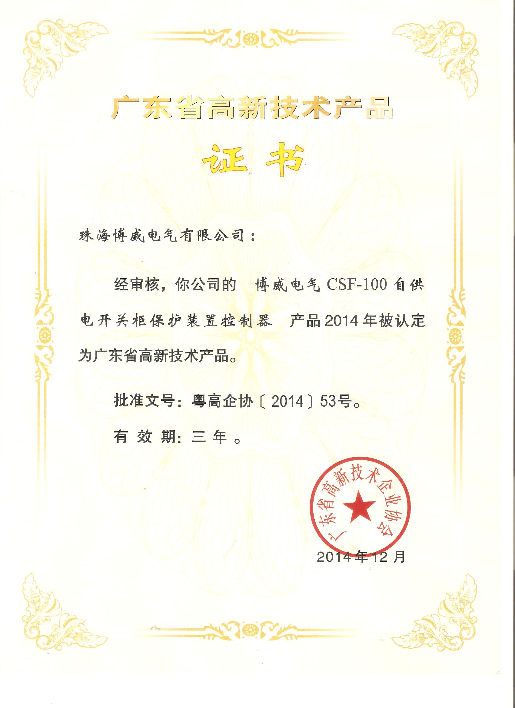 高新技術(shù)產(chǎn)品證書