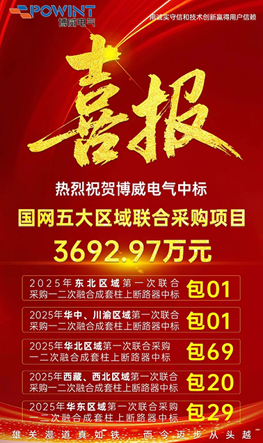 荷風(fēng)六月,捷報(bào)頻傳。在國(guó)家電網(wǎng)2025年華中川渝、華北、西藏西北、東北、華東區(qū)域第一次聯(lián)合采購(gòu)項(xiàng)目中,博威電氣憑借行業(yè)領(lǐng)先的技術(shù)實(shí)力和卓越的產(chǎn)品性能,成功中標(biāo)一二次融合成套柱上斷路器產(chǎn)品。此次中標(biāo)實(shí)現(xiàn)了國(guó)家電網(wǎng)五大區(qū)域聯(lián)合采購(gòu)項(xiàng)目的"大滿貫",總中標(biāo)金額達(dá)3692.97萬(wàn)元。